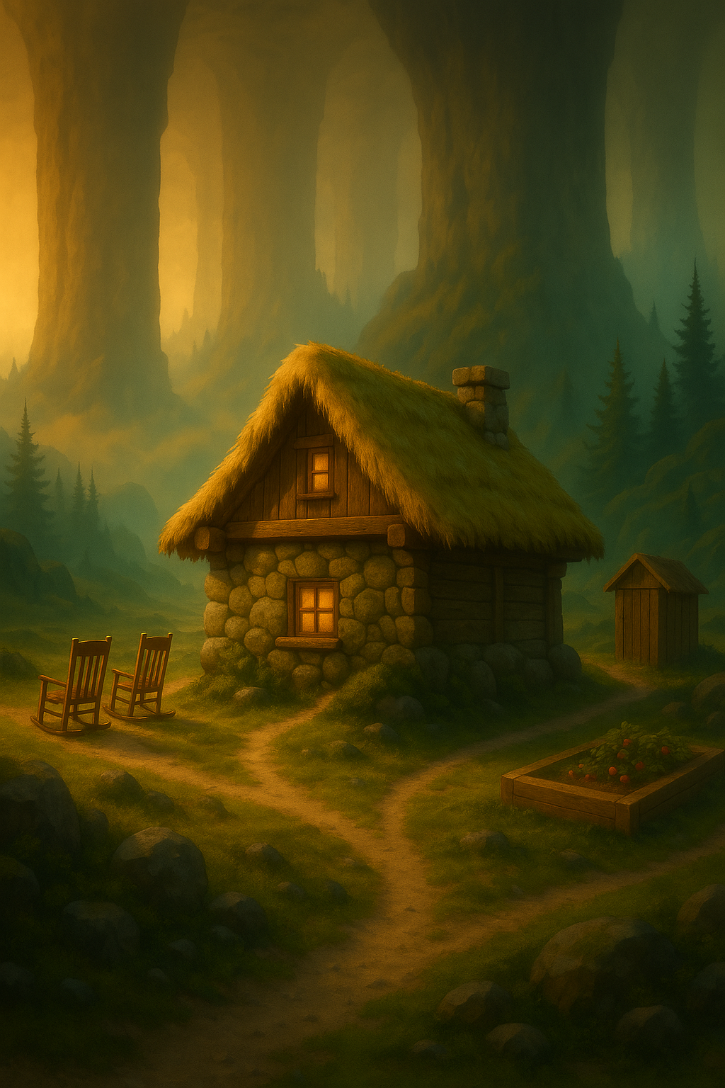 Welcome to Stone-Hollow Cabin, a hand-built stone-and-timber hideaway nestled deep within the glowing caverns of the Great Underlight Valley. Carved from rounded river-boulders and crowned with a living grass roof, this warm and inviting cottage offers a rare chance to experience natural serenity beneath towering subterranean columns and softly illuminated mists.
